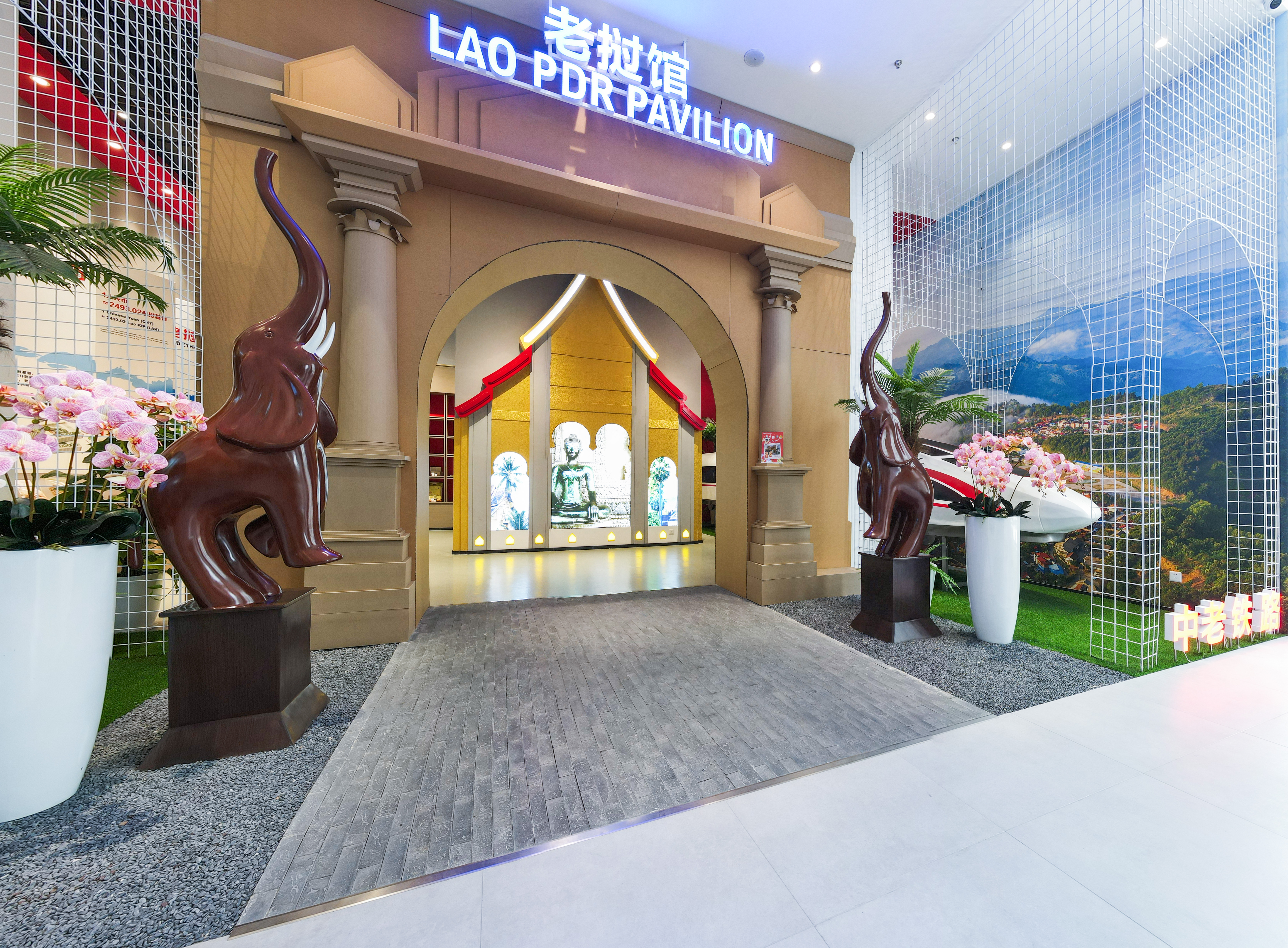 來(lái)到老撾館,考察團(tuán)立即被醒目的、象征中老友誼的“中老鐵路”所吸引。入口處兩尊工藝精湛、栩栩如生的大象木雕,以及仿照老撾凱旋門(mén)廣場(chǎng)精心設(shè)計(jì)的門(mén)頭造型,都令考察團(tuán)成員仿佛置身老撾。當(dāng)?shù)弥蠐氲钠【啤⒉枞~等特色商品通過(guò)匯聚中心線上線下平臺(tái)受到了越來(lái)越多的消費(fèi)者青睞時(shí),希帕占·南塔馮薩副主席深表感謝,也非常感動(dòng)在中國(guó)還有如此創(chuàng)意且專(zhuān)為老撾商家進(jìn)行商品展銷(xiāo)的展館,為老撾商家創(chuàng)造了無(wú)限商機(jī),讓更多的人通過(guò)匯聚中心知道老撾、了解老撾進(jìn)而走進(jìn)老撾,也成為促進(jìn)中老雙邊經(jīng)貿(mào)往來(lái)的重要窗口!