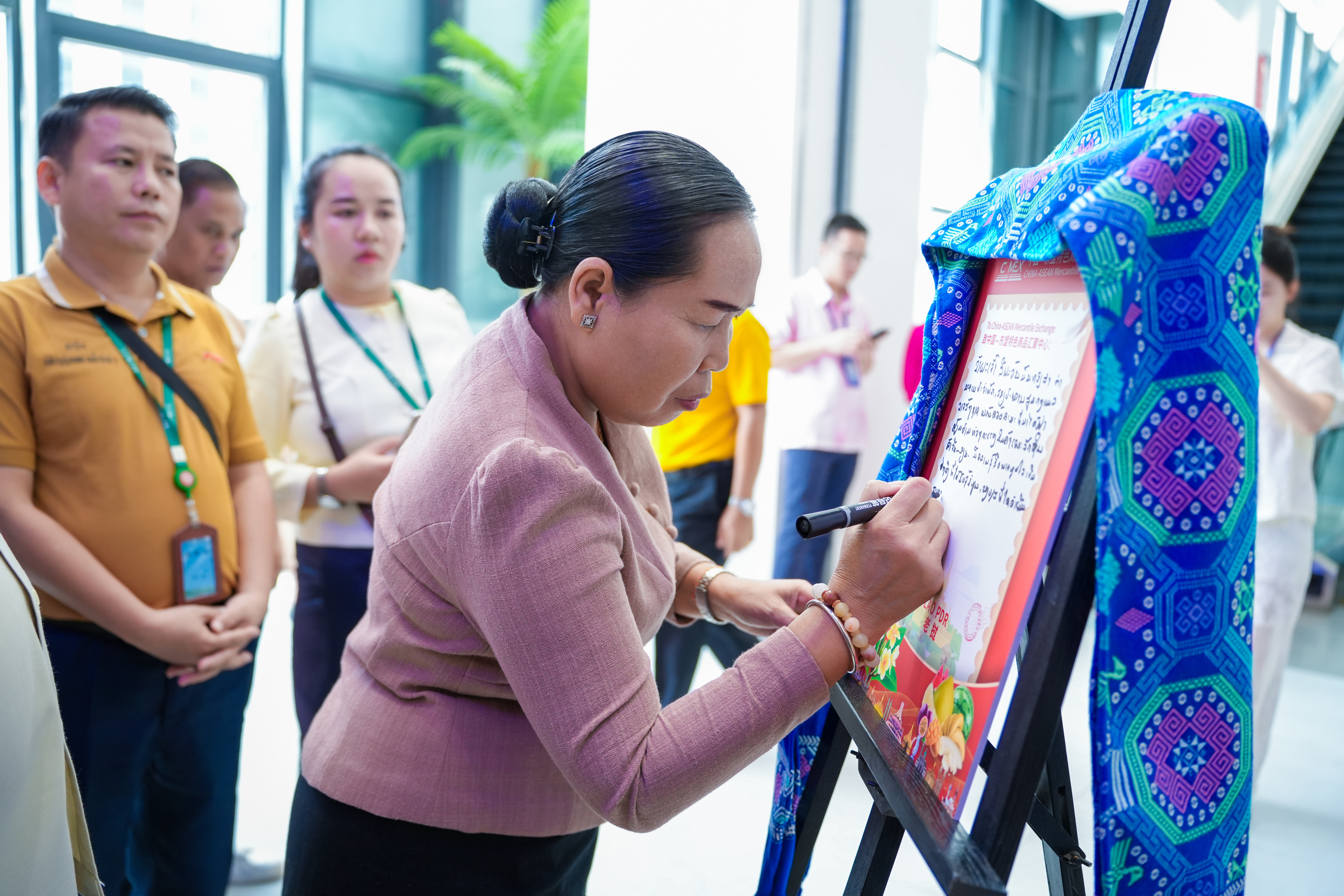 希帕占·南塔馮薩副主席在老撾館寫(xiě)下了對(duì)匯聚中心的寄語(yǔ),期待未來(lái)有更多的老撾特色商品進(jìn)駐匯聚中心,并祝項(xiàng)目越來(lái)越好。
