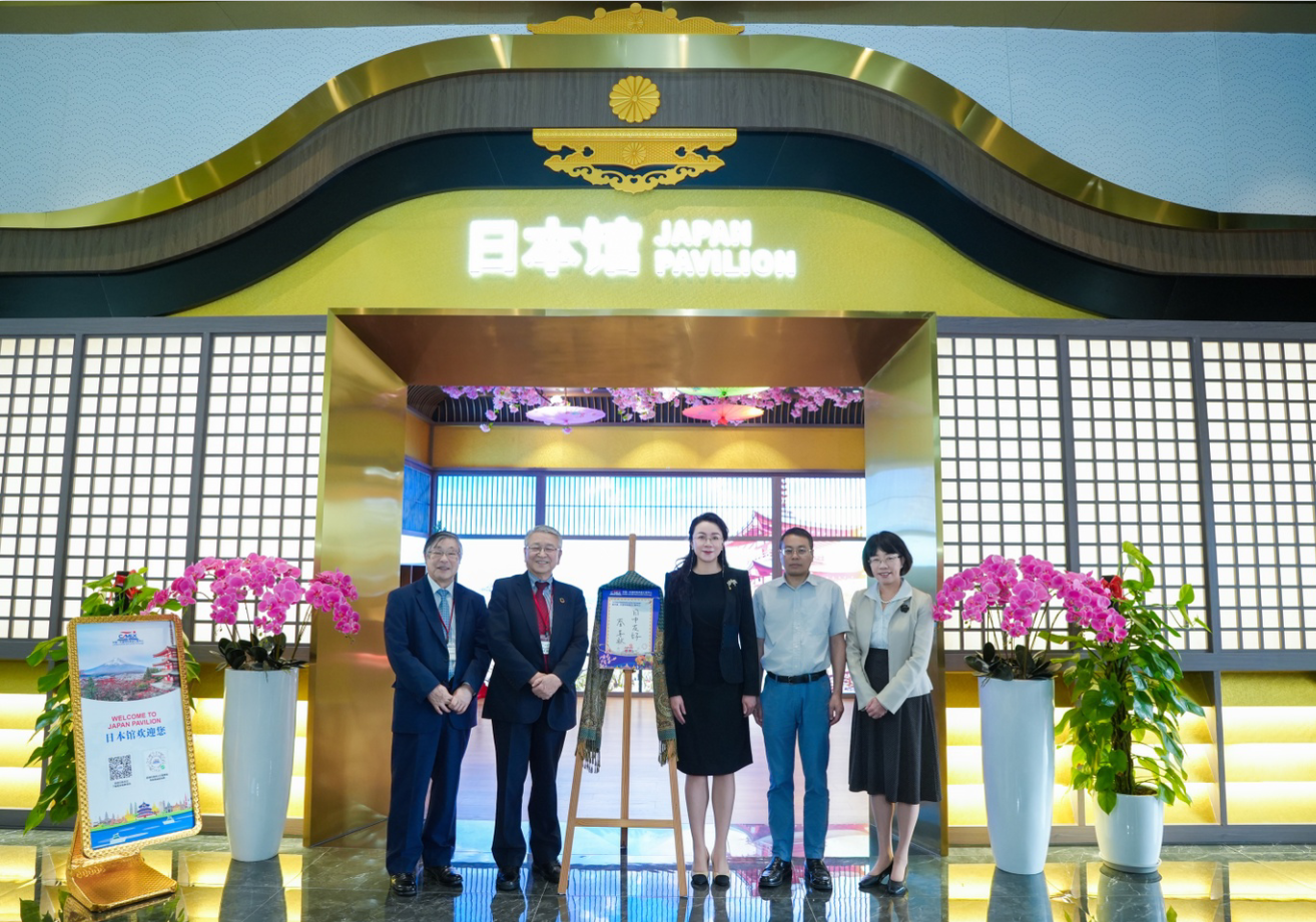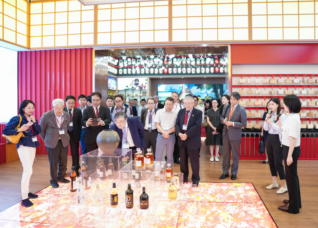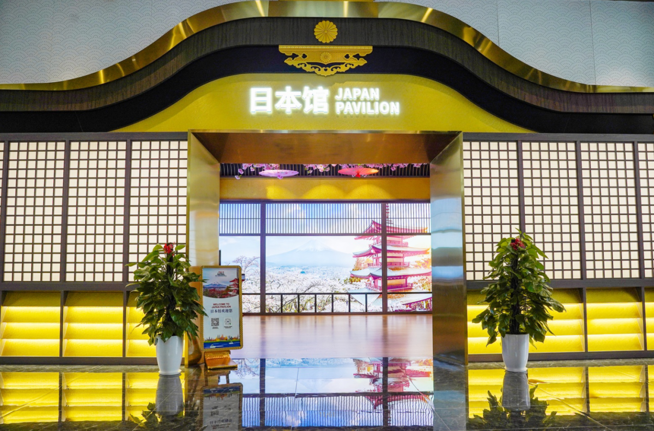 來到日本館,濃郁的日式風情撲面而來,代表團紛紛駐足拍照留念。作為匯聚中心獨具特色的四季主題館,日本館以“季節(jié)流轉”為設計主線,巧妙融合了日本傳統(tǒng)建筑美學與現(xiàn)代展示技術,加之結合浮世繪的意境、茶道的禪意、花道的雅致,打造出移步換景的沉浸式體驗空間,讓訪客在有限的空間內(nèi)領略到日本文化的精髓。